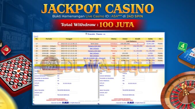 DEWATOGEL JACKPOT LIVE CASINO 24D SPIN Rp 100.000.000,- LUNAS