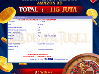 DEWATOGEL JACKPOT TOGEL DI AMAZON 3D Rp 115.000.000,- LUNAS